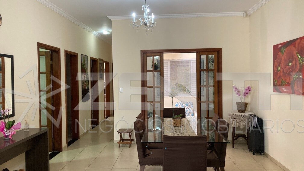 Residência à venda por R$910.000,00, com terreno de 300m² e 200m² de construção. Possui 3 dormitórios, incluindo 1 suíte, sala de estar com dois ambientes, cozinha, lavabo e lavanderia. Conta ainda com amplo quintal, área gourmet completa, dormitório de funcionários e vaga de garagem coberta para dois carros. Ideal para quem busca uma residência espaçosa e bem equipada.